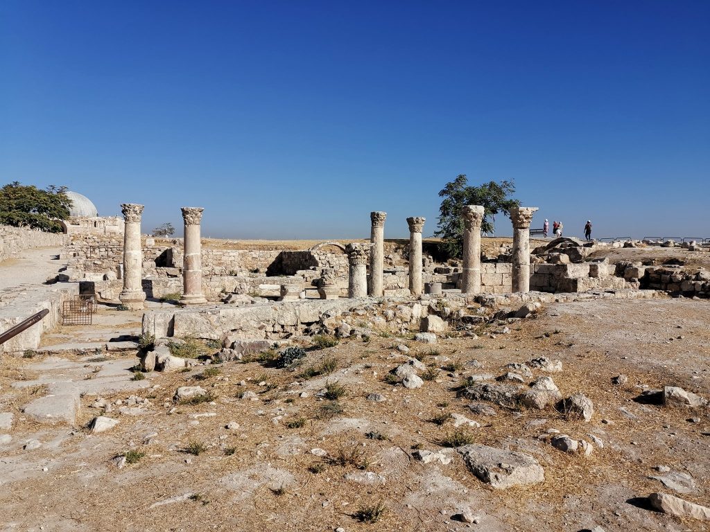 Niezależnie musicie wiedzieć, iż cytadela wzniesiona została w VIII wieku pod panowaniem arabskim. Na jej Wzgórzu już dwa tysiące lat p.n.e istniało miasto. 800 lat później Amman był stolicą plemienia Amonitów, którzy najpierw przyjaźnili się z królem Dawidem a następnie z nim walczyli. Otoczona kiedyś 700 metrowym murem dziś o swojej świetności mówi kilkunastoma kolumnami z bizantyjskiej bazyliki i fragmentem świątyni Herkulesa. W najlepszej architektonicznie kondycji został Pałac Umajjadów, pochodzący z okresu między VII a VIII wiekiem. Mimo zniszczenia przez trzęsienie ziemi w 749 roku zrekonstruowano jedno pomieszczenie na planie krzyża przykryte kopułą. Widok na „białe miasto” jaki rozpościera się ze szczytu jest doprawdy imponujący a ruiny z cytadeli stanowią obowiązkowy punkt zwiedzania stolicy tego kraju.