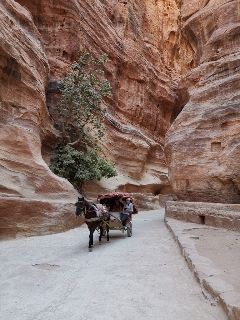 Odmieniana przez nas przez wszystkie przypadki a najczęściej O! Petro! Miasteczko ze skały – stanowiące perłę architektury, perłę tajemnicy i przygody. Wykute ponad 2000 lat temu przez Nabatejczyków w piaskowcu półpustynnych terenów południowo-zachodniej Jordanii stanowi największą wizytówkę tego kraju. W okresie świetności zamieszkiwane przez 30 tysięcy osób, zniszczone trzęsieniami ziemi między VI a VIII wiekiem, stopniowo gasło i pustoszało. Dzisiaj to osiem kilometrów zachwytu nad zagadką starożytności. Zwiedzanie zaczynamy w wąskim (trzy metry), krętym i długim (1,5 km) kanionie o ścianach, które mierzą od 90 do 180 metrów. Malownicze wąwozy zmieniają kolor w zależności od pory dnia i intensywności słońca, raz zwiedzamy złoto-żółte masywy skalne raz zupełnie czerwone. Chwile refleksji nad wykutymi w skale siedzibami mieszkalnymi i setkami pieczar grobowych nie pozwalają przejść obojętnie. Dziesiątki nabatejskich artystów dzień po dniu wykuwało w miękkim nubijskim piaskowcu drobne listki, twarze otulone burzą włosów, dzbany i wizerunki zwierząt. Nie bez powodów w 2007 roku Petra została ogłoszona jednym z nowych siedmiu cudów świata. Warto wiedzieć, że Nabatejczycy nie mieli własnego typowego stylu architektonicznego, ale byli sprawnymi kupcami, urzędnikami i dyplomatami i jako nomadzi mieli okazję podglądać inne style, dobre przykłady i z nich czerpać z nich wzorce. Miasteczko jest więc mieszanką sztuki egipskiej, asyryjskiej, mezopotamskiej, hellenistycznej i rzymskiej.