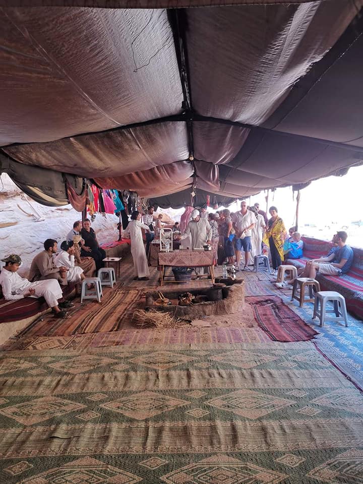 Beduini mają „swoje” miejsca w różnych częściach pustyni, najczęściej tam gdzie cień skalny pozwala skryć się przed słonecznym żarem. Otwarci na pielgrzymów, serdeczni, ciekawi – zagadują po swojemu, częstując herbatą. Jeden z naszych najmłodszych pielgrzymów nie bacząc na savoir-vivre, urzeczony jej smakiem wypił niemalże cały zapas. Śmieli się i żartowali parząc nowy gar z szałwią, cynamonem i kardamonem. Smak tej herbaty to smak Jordanii: niby wiesz, że herbata i znasz jej dodatki a posmak jaki zostawia jest niebywały i nie znajdziesz go nigdzie indziej. W 2011 roku obszar chroniony Wadi Rum został wpisany na listę Światowego Dziedzictwa UNESCO.