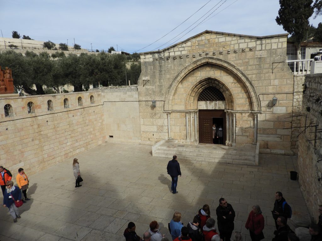 Uliczkami Starej Jerozolimy przeszliśmy do kościoła św. Piotra In Gallicantu, położonego w niewielkiej dolinie na zboczu Wzgórza Świątynnego. Prawdopodobnie kościół stoi na miejscu domu najwyższego kapłana Kajfasza, do którego zaprowadzono pojmanego Jezusa. To tu Piotr miał się trzy razy zaprzeć Jezusa. Z tego miejsca rozciąga się wspaniały widok na Miasto Dawida wraz z otaczającymi je terenami. Stąd też schody rzymskie prowadzą do źródła Gihon, które jako jedyne zaopatrywało Jerozolimę w wodę. W podziemiach kościoła znajdują się piwnice, wykorzystywane kiedyś jako pomieszczenia do przetrzymywania więźniów. Według wszelkiego prawdopodobieństwa właśnie tam Jezus przeżył ostatnią noc swojego ziemskiego życia.