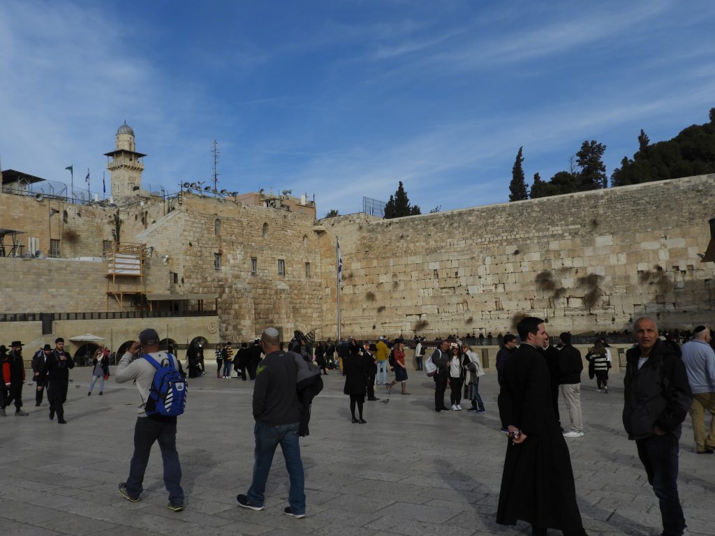 Po przerwie nawiedziliśmy Ścianę Północną zwaną Ścianą Płaczu, jedyną zachowaną do dnia dzisiejszego pozostałość Świątyni Jerozolimskiej. W chwili obecnej jest to najświętsze miejsce judaizmu. Mogliśmy również pomodlić się chwilę w tym miejscu. Mężczyźni po swojej wydzielonej stronie, kobiety po swojej.